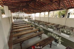 Um espaço encantador que conecta o interior do salão à natureza ao redor. Coberto e arejado, o Solar AurA é ideal para lounges, bares e áreas de convivência. Com iluminação natural e charme rústico sofisticado, ele amplia a experiência do seu evento com leveza e beleza.
